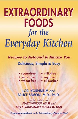 Extraordinary Foods for the Everyday Kitchen, by Lori Kornblum, and Bruce Semon, M.D., Ph.D. is a companion cookbook to An Extraordinary Power to Heal. Extraordinary Foods is completely free of yeast, wheat/gluten, milk/casein, and common allergens such as soy, corn, peanuts and rye. This cookbook is also completely kosher and sugar free. Containing more than 125 new, original recipes and more than 60 menus including recipes from both Extraordinary Foods and our first book, Feast Without Yeast:4 Stages to Better Health, the recipes and menus will astound and amaze you at how many unbelievably good tasting foods you can make with limited ingredients. This book goes beyond Feast Without Yeast, including recipes for tacos, pizza, salsa, felafel, many new salad dressings, mayonnaise, and other delicious foods that most people thought they had to give up on a yeast free, wheat free, dairy free diet. Extraordinary Foods uses no artificial ingredients and no "exotic" ingredients that require expeditions to specialty stores. All ingredients are whole foods, vegetables, and easy to find.